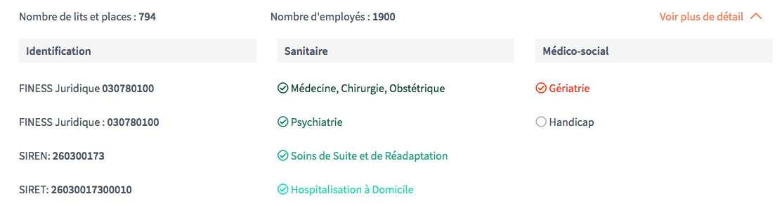 À partir de la fiche d’un établissement, vous pouvez visualiser ses champs d’actions : • MCO Pour consulter ses activités, cliquez sur